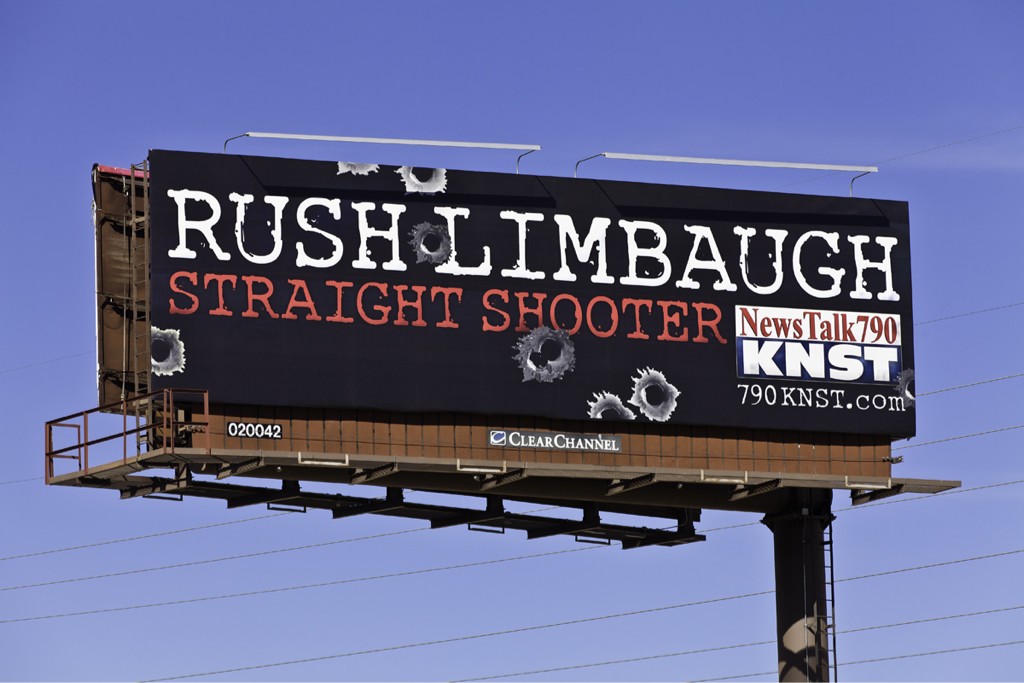 In the meantime, the Sheriff is being attacked for criticizing right-wing commentators for their over-the-top rhetoric, including conservative icon, Rush Limbaugh. Pima County Sheriff Clarence Dupnik stated “The kind of rhetoric that flows from people like Rush Limbaugh, in my judgment he is irresponsible, uses partial information, sometimes wrong information. . . [Limbaugh] attacks people, angers them against government, angers them against elected officials and that kind of behavior in my opinion is not without consequences.” [Update: Limbaugh has reportedly fired back by saying that the Democratic Party supports Loughner and is “attempting to find anybody but him to blame.” Wasn’t he supposed to be Costa Rica?] Reportedly near the scene of the shooting is this billboard: