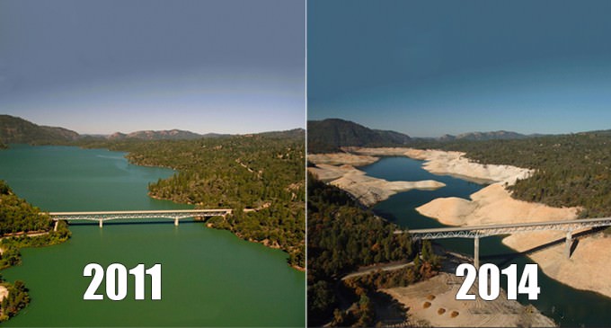California dams… before drought and now.