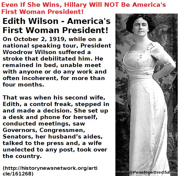 Edith Wilson is somewhat controversial. She claimed that Woodrow was approving everything she did. However, she seemed to be the only one who understood his stroke garbled speech. So, she ran the country in the name of Woodrow, but not in her own name.