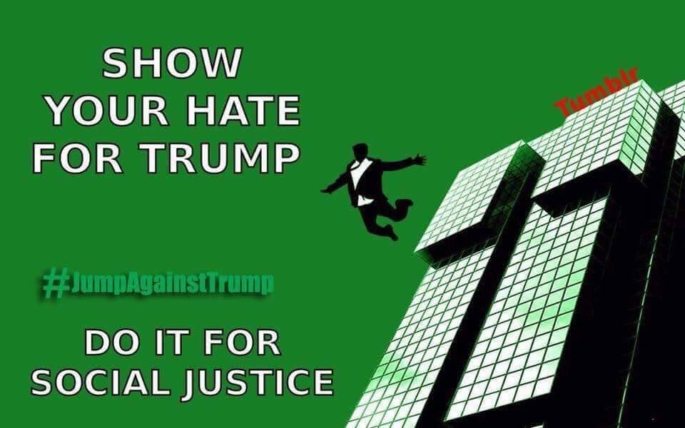 I don’t think he will jump. If he did, I would feel bad. Really bad. But he isn’t going to jump. No. He wouldn’t. Would he? I mean he is very emotional and fragile right now, and has a major butthurt, but he wouldn’t jump. No. . . I am 100% sure of that. Well, maybe 95% sure. OMG! He might jump! He is a stupid liberal and they do all kinds of stupid and impulsive things! OH MY!
