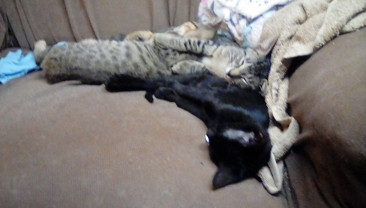 (Yes, I know what the Spelling Nazis are going to say!) Plus, here is a pic of three little kittens who ate a big meal, got to playing and tumbling over each other in the chair, and then crashed en masse into a deep sleep.)