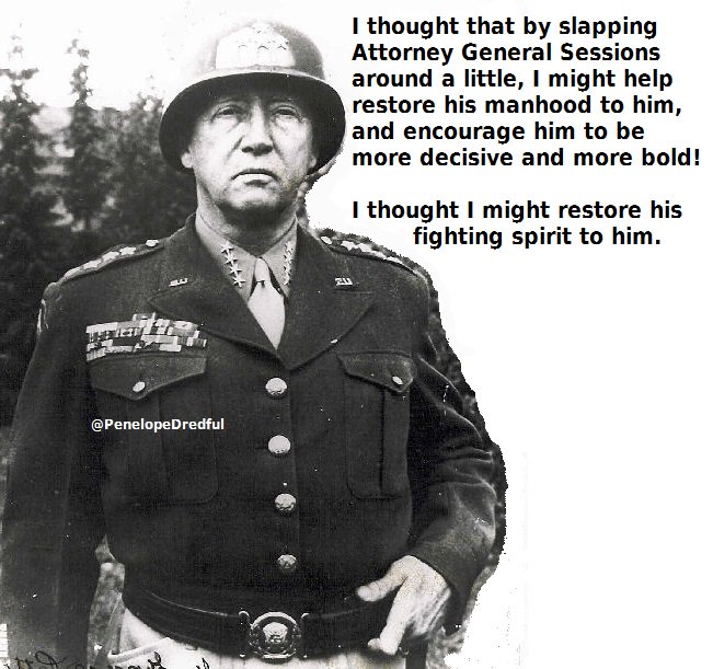 I wonder if President Trump is pulling a Patton b*tch slap on Sessions??? Oh! Look what some clever wag just posted on Twitter. . . 🙂